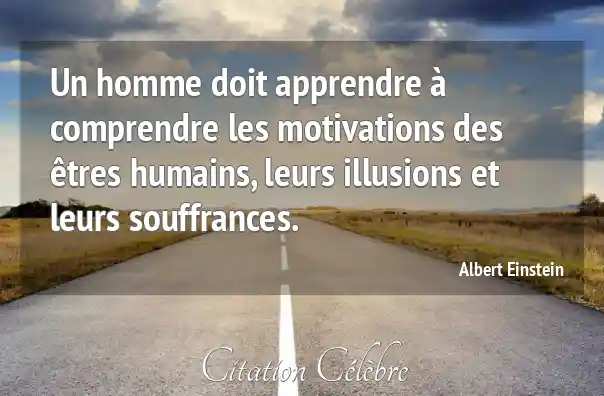 Un homme doit apprendre à comprendre les motivations des êtres humains, leurs illusions et leurs souffrances.