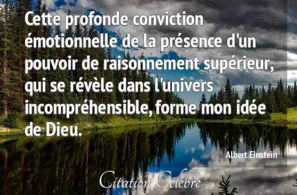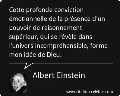 Cette profonde conviction émotionnelle de la présence d'un pouvoir de raisonnement supérieur, qui se révèle dans l'univers incompréhensible, forme mon idée de Dieu.