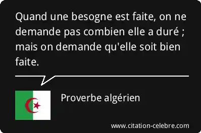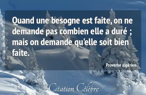 Quand une besogne est faite, on ne demande pas combien elle a duré ; mais on demande qu'elle soit bien faite.