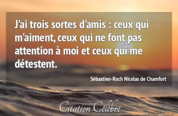 J'ai trois sortes d'amis : ceux qui m'aiment, ceux qui ne font pas attention à moi et ceux qui me détestent.