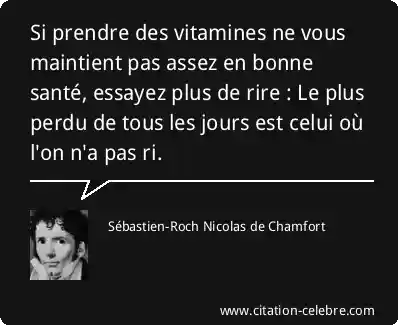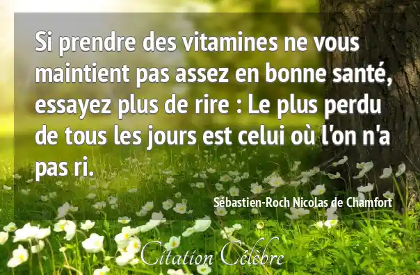 Si prendre des vitamines ne vous maintient pas assez en bonne santé, essayez plus de rire : Le plus perdu de tous les jours est celui où l'on n'a pas ri.