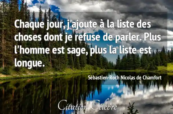 Chaque jour, j'ajoute à la liste des choses dont je refuse de parler. Plus l'homme est sage, plus la liste est longue.