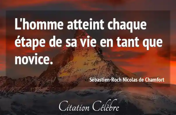 L'homme atteint chaque étape de sa vie en tant que novice.