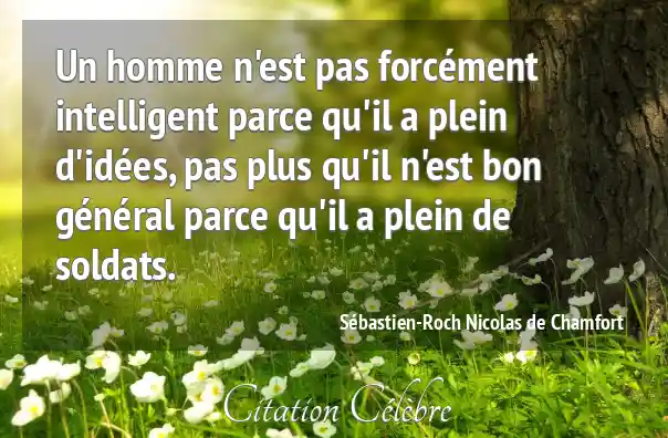 Un homme n'est pas forcément intelligent parce qu'il a plein d'idées, pas plus qu'il n'est bon général parce qu'il a plein de soldats.