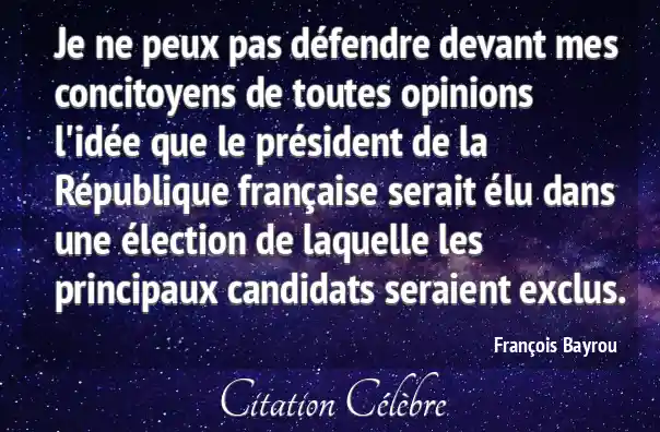 Je ne peux pas défendre devant mes concitoyens de toutes opinions l'idée que le président de la République française serait élu dans une élection de laquelle les principaux candidats seraient exclus.
