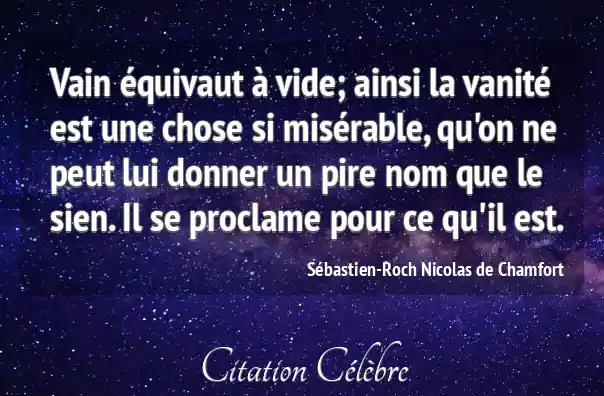 Vain équivaut à vide; ainsi la vanité est une chose si misérable, qu'on ne peut lui donner un pire nom que le sien. Il se proclame pour ce qu'il est.