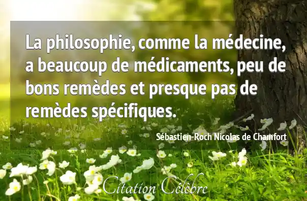 La philosophie, comme la médecine, a beaucoup de médicaments, peu de bons remèdes et presque pas de remèdes spécifiques.