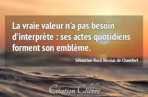 La vraie valeur n'a pas besoin d'interprète : ses actes quotidiens forment son emblème.