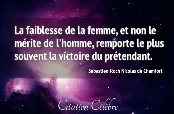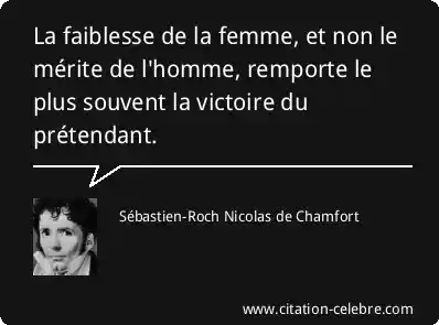 La faiblesse de la femme, et non le mérite de l'homme, remporte le plus souvent la victoire du prétendant.