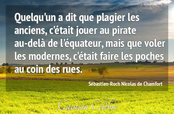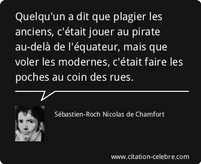 Quelqu'un a dit que plagier les anciens, c'était jouer au pirate au-delà de l'équateur, mais que voler les modernes, c'était faire les poches au coin des rues.