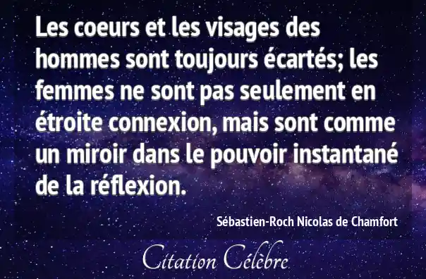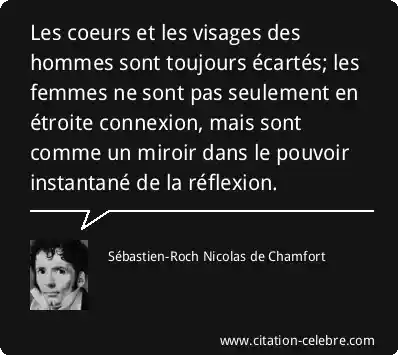 Les coeurs et les visages des hommes sont toujours écartés; les femmes ne sont pas seulement en étroite connexion, mais sont comme un miroir dans le pouvoir instantané de la réflexion.