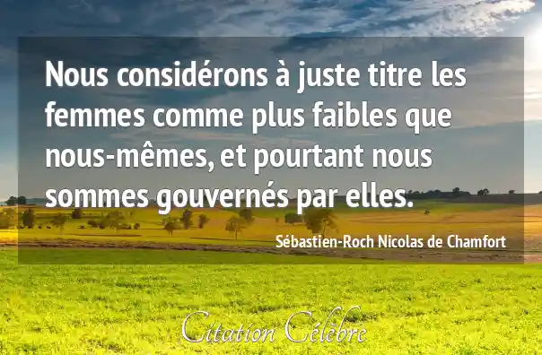 Nous considérons à juste titre les femmes comme plus faibles que nous-mêmes, et pourtant nous sommes gouvernés par elles.