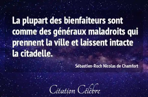 La plupart des bienfaiteurs sont comme des généraux maladroits qui prennent la ville et laissent intacte la citadelle.