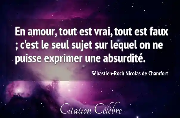 En amour, tout est vrai, tout est faux ; c'est le seul sujet sur lequel on ne puisse exprimer une absurdité.