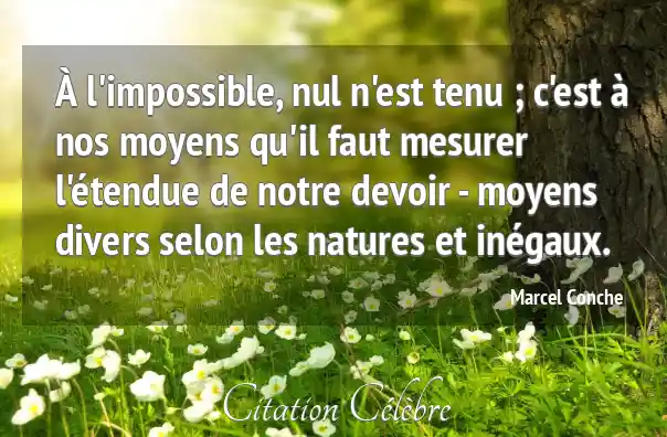 À l'impossible, nul n'est tenu ; c'est à nos moyens qu'il faut mesurer l'étendue de notre devoir - moyens divers selon les natures et inégaux.