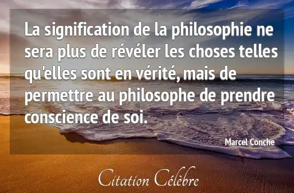 La signification de la philosophie ne sera plus de révéler les choses telles qu'elles sont en vérité, mais de permettre au philosophe de prendre conscience de soi.