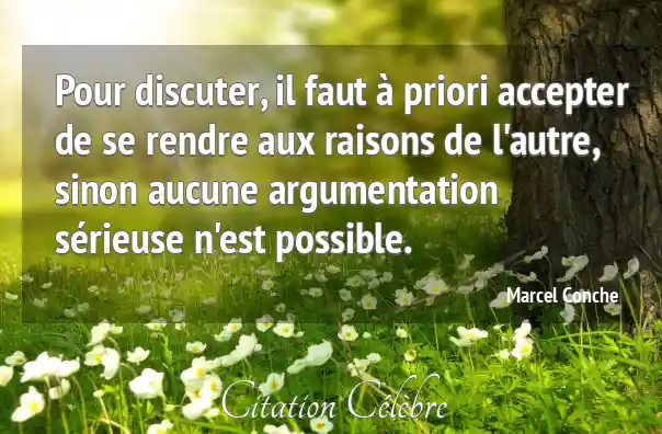 Pour discuter, il faut à priori accepter de se rendre aux raisons de l'autre, sinon aucune argumentation sérieuse n'est possible.