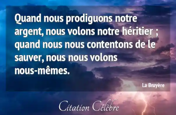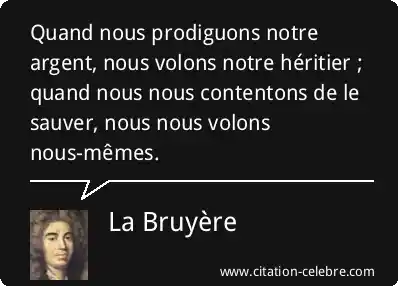 Quand nous prodiguons notre argent, nous volons notre héritier ; quand nous nous contentons de le sauver, nous nous volons nous-mêmes.