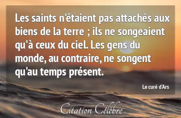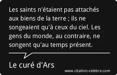 Les saints n'étaient pas attachés aux biens de la terre ; ils ne songeaient qu'à ceux du ciel. Les gens du monde, au contraire, ne songent qu'au temps présent.