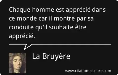 Chaque homme est apprécié dans ce monde car il montre par sa conduite qu'il souhaite être apprécié.