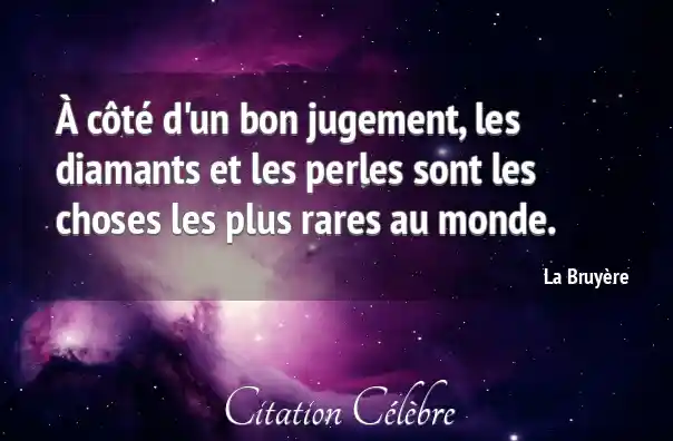 À côté d'un bon jugement, les diamants et les perles sont les choses les plus rares au monde.