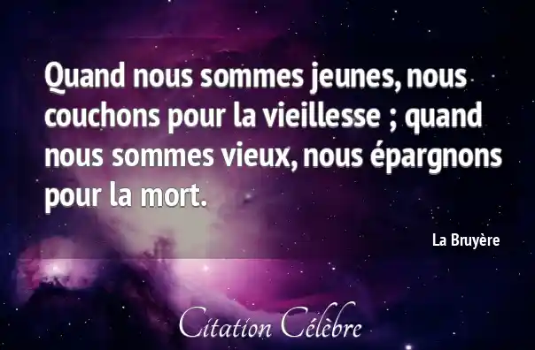 Quand nous sommes jeunes, nous couchons pour la vieillesse ; quand nous sommes vieux, nous épargnons pour la mort.