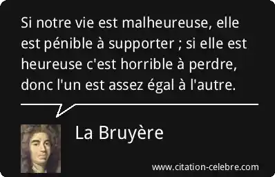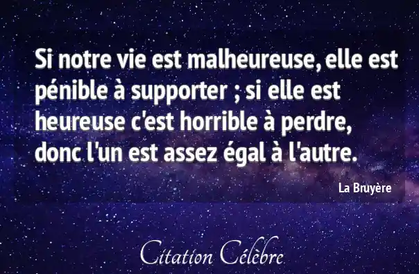 Si notre vie est malheureuse, elle est pénible à supporter ; si elle est heureuse c'est horrible à perdre, donc l'un est assez égal à l'autre.