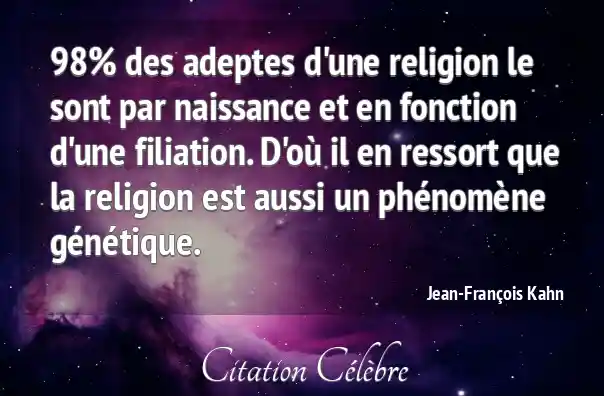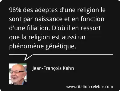98% des adeptes d'une religion le sont par naissance et en fonction d'une filiation. D'où il en ressort que la religion est aussi un phénomène génétique.