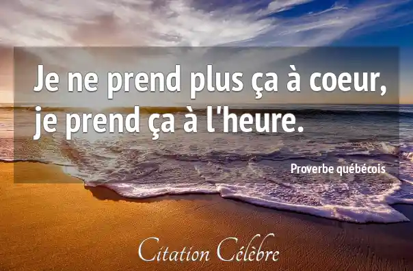 Je ne prend plus ça à coeur, je prend ça à l'heure.