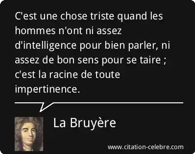 C'est une chose triste quand les hommes n'ont ni assez d'intelligence pour bien parler, ni assez de bon sens pour se taire ; c'est la racine de toute impertinence.