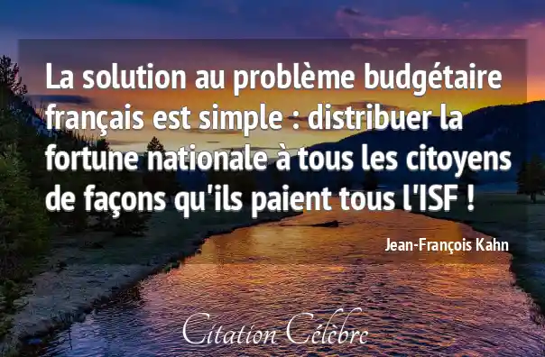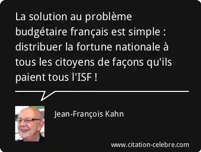 La solution au problème budgétaire français est simple : distribuer la fortune nationale à tous les citoyens de façons qu'ils paient tous l'ISF !