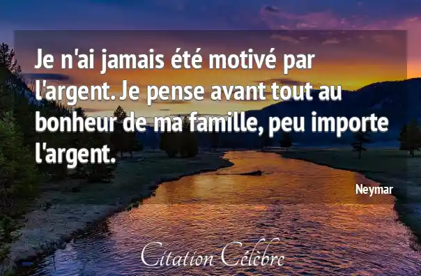 Je n'ai jamais été motivé par l'argent. Je pense avant tout au bonheur de ma famille, peu importe l'argent.