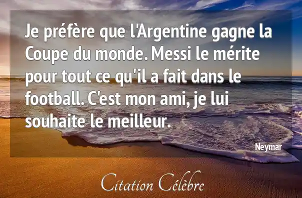 Je préfère que l'Argentine gagne la Coupe du monde. Messi le mérite pour tout ce qu'il a fait dans le football. C'est mon ami, je lui souhaite le meilleur.