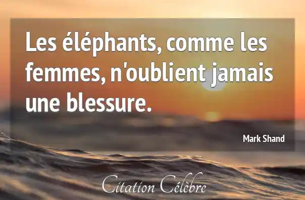 Les éléphants, comme les femmes, n'oublient jamais une blessure.