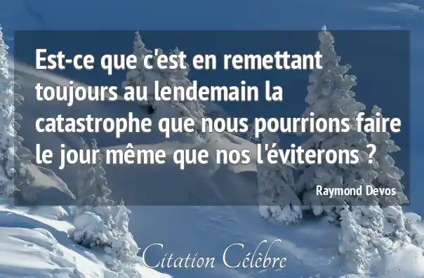 Est-ce que c'est en remettant toujours au lendemain la catastrophe que nous pourrions faire le jour même que nos l'éviterons ?
