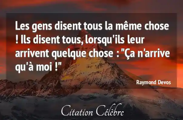 Les gens disent tous la même chose ! Ils disent tous, lorsqu'ils leur arrivent quelque chose : "Ça n'arrive qu'à moi !"
