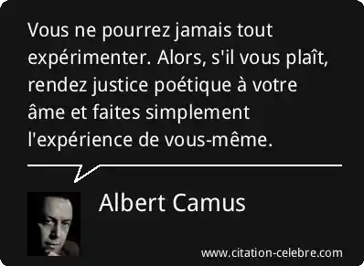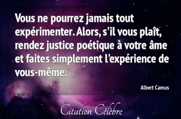 Vous ne pourrez jamais tout expérimenter. Alors, s'il vous plaît, rendez justice poétique à votre âme et faites simplement l'expérience de vous-même.