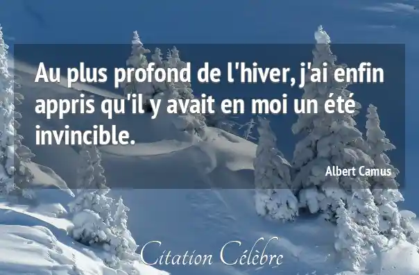 Au plus profond de l'hiver, j'ai enfin appris qu'il y avait en moi un été invincible.