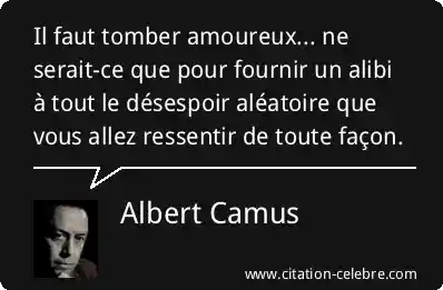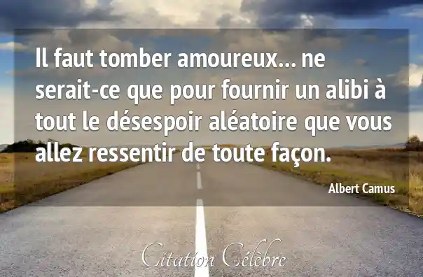 Il faut tomber amoureux... ne serait-ce que pour fournir un alibi à tout le désespoir aléatoire que vous allez ressentir de toute façon.
