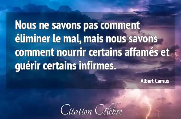 Nous ne savons pas comment éliminer le mal, mais nous savons comment nourrir certains affamés et guérir certains infirmes.