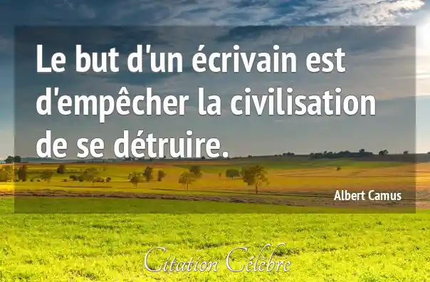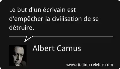 Citation Albert Camus detruire : Le but d'un écrivain est d'empêcher la civilisation de se...