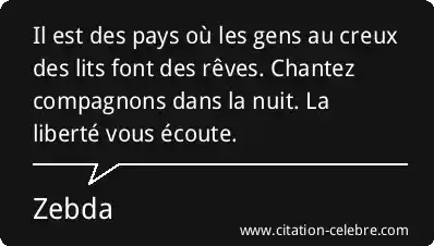 Il est des pays où les gens au creux des lits font des rêves. Chantez compagnons dans la nuit. La liberté vous écoute.