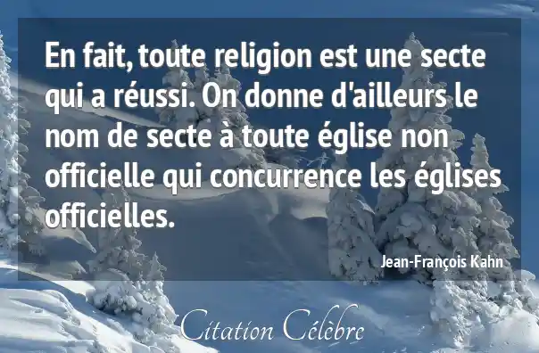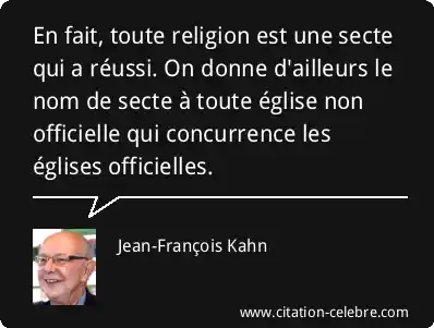 En fait, toute religion est une secte qui a réussi. On donne d'ailleurs le nom de secte à toute église non officielle qui concurrence les églises officielles.