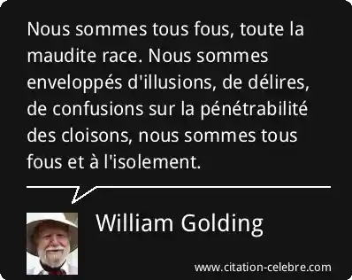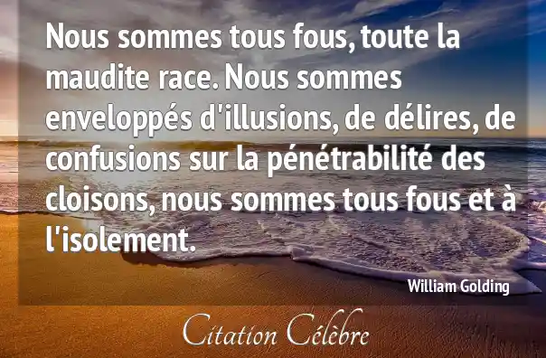 Nous sommes tous fous, toute la maudite race. Nous sommes enveloppés d'illusions, de délires, de confusions sur la pénétrabilité des cloisons, nous sommes tous fous et à l'isolement.