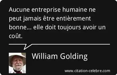 Aucune entreprise humaine ne peut jamais être entièrement bonne... elle doit toujours avoir un coût.