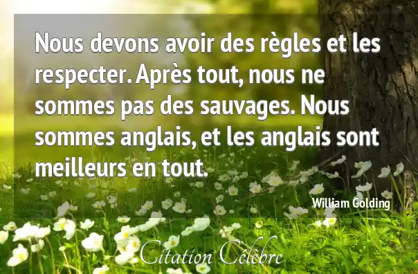 Nous devons avoir des règles et les respecter. Après tout, nous ne sommes pas des sauvages. Nous sommes anglais, et les anglais sont meilleurs en tout.