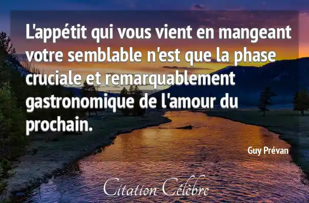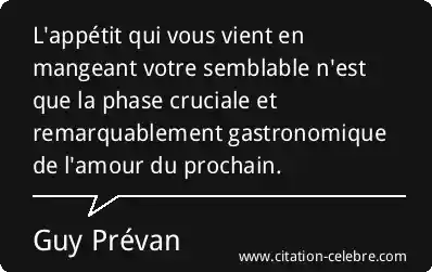 L'appétit qui vous vient en mangeant votre semblable n'est que la phase cruciale et remarquablement gastronomique de l'amour du prochain.