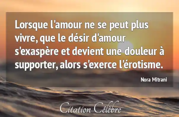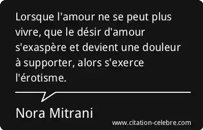 Lorsque l'amour ne se peut plus vivre, que le désir d'amour s'exaspère et devient une douleur à supporter, alors s'exerce l'érotisme.