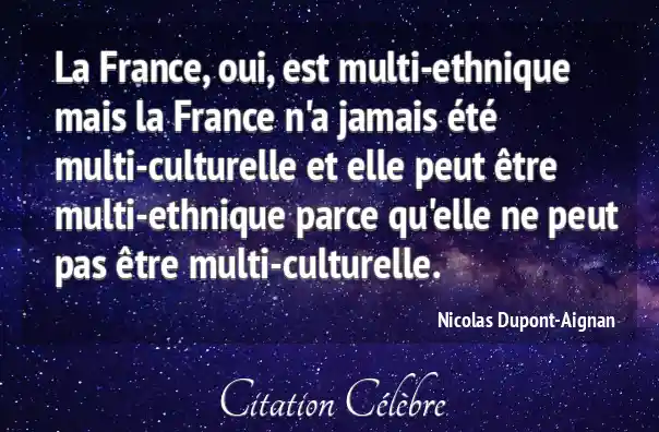 La France, oui, est multi-ethnique mais la France n'a jamais été multi-culturelle et elle peut être multi-ethnique parce qu'elle ne peut pas être multi-culturelle.