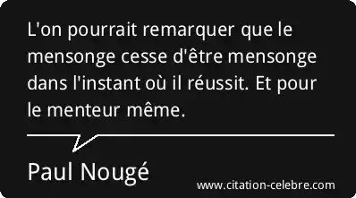 L'on pourrait remarquer que le mensonge cesse d'être mensonge dans l'instant où il réussit. Et pour le menteur même.